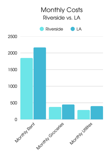 - Riverside’s overall cost of living is 20% lower than the rest of California.