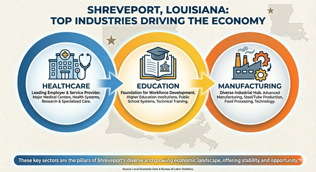 - Healthcare– Willis-Knighton Health System is one of the largest employers in the region.
