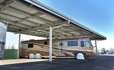 Much like semi truck parking, there are few indoor enclosed solutions for RV parking. The most popularly chosen option for RV storage is through covered parking, which is available at many storage facilities across the country. It is strongly recommended that food items, precious belongings, and fuel is removed from the vehicle prior to long-term storage. This allows the greatest degree of security and prevents pests from infesting the vehicle. Additionally, to help protect the interior, it is best to pull the blinds to prevent sun-damage.
